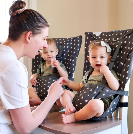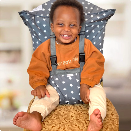 The Ezy Chair is a versatile and adaptable dining chair that can fit various shapes and sizes, making it an ideal seating solution for babies, whether at home or on the go.